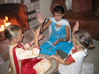 Diwali party... all before 4:00. At least our games don't start until 9:00. Oh wait, we also have snacks for the 9:00 game, I guess I have to leave the house after all. We are really looking forward to going to our neighbors house for Diwali. There will be lots of yummy Indian food, and the girls are all borrowing Indian dresses to wear. Syd & Sonoli are painting henna tattoos on their hands in the back yard right now. That will be a nice end to a busy day.